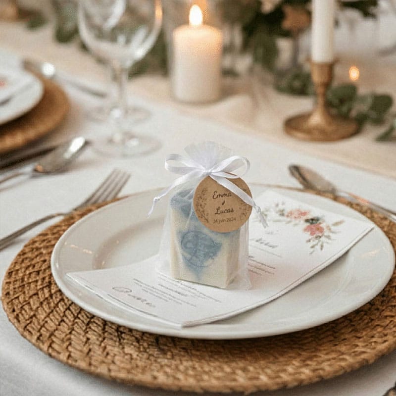 Ce produit fonctionne sur devis, sans paiement immédiat.- Vous passez commande via ce formulaire (sélection du savon + prénom(s) + date).